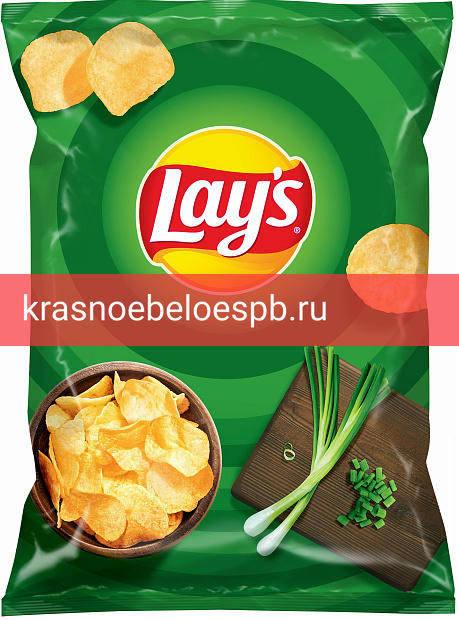 пачку хрустящих чипсов Лейс со вкусом молодого зеленого лука и